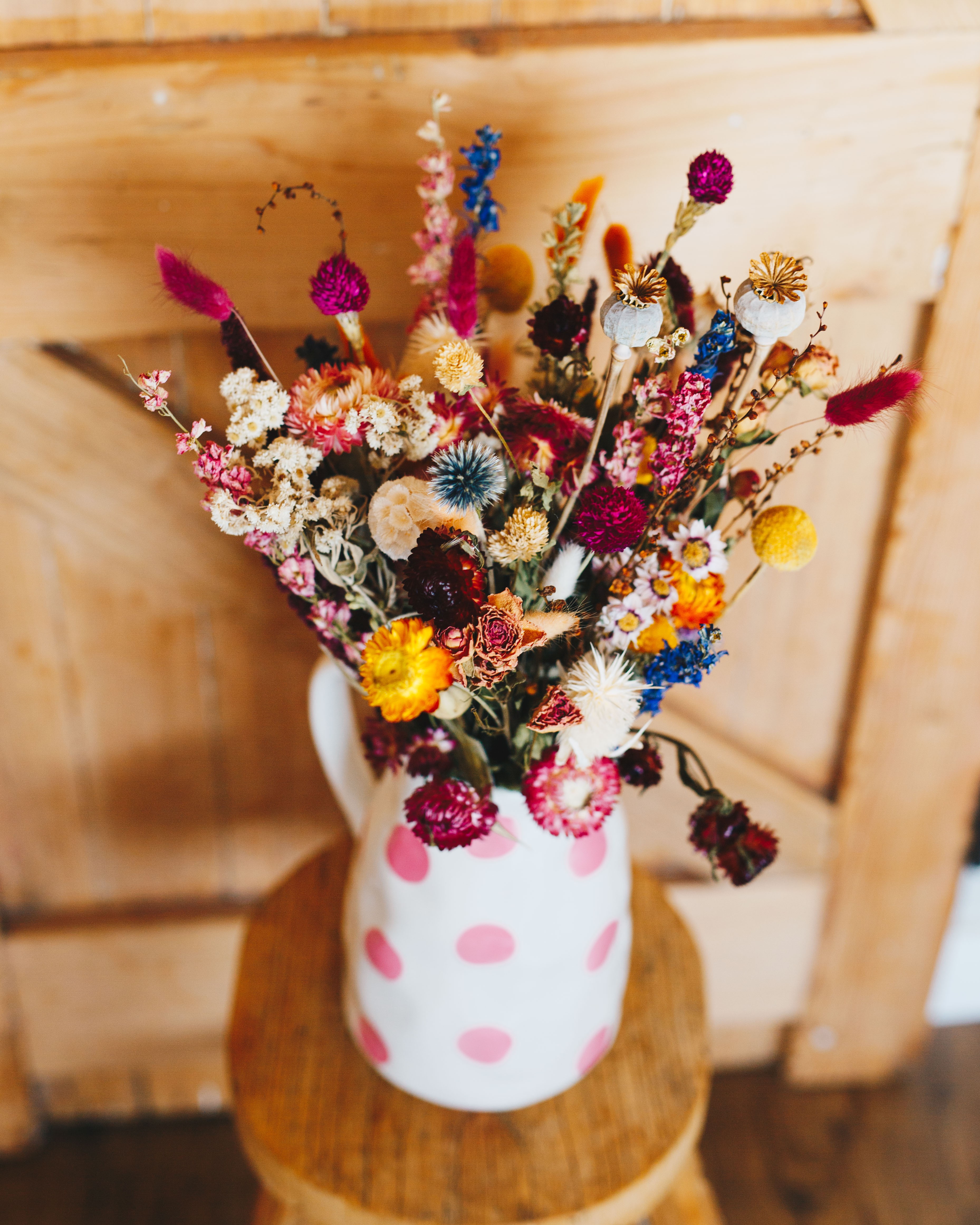 Dried flowers have long been a passion of mine. I began creating with them in 2020, and after taking a few years away to raise my beautiful boys, my other love began calling me back. Today, I am once again immersed in the art of dried florals — real flowers thoughtfully preserved to last indefinitely. I am deeply drawn to this concept: a fleeting moment in nature, carefully captured, curated and preserved in time. Their textures and colours possess a quiet, enduring beauty.